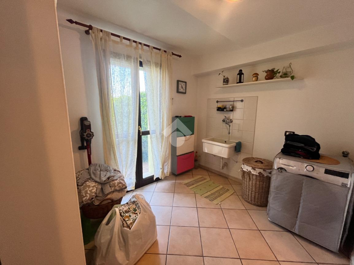 Al piano terra vi è la zona servizio, in cui troviamo la cantina finestrata, asciutta e ampia; adiacente ad essa vi è un locale adattabile a studio o area hobby (palestra, piccola attrezzaia, etc) ed una lavanderia finestrata con ingresso al bagno di servizio; infine vi l'autorimessa, da cui si accede direttamente nell'abitazione.