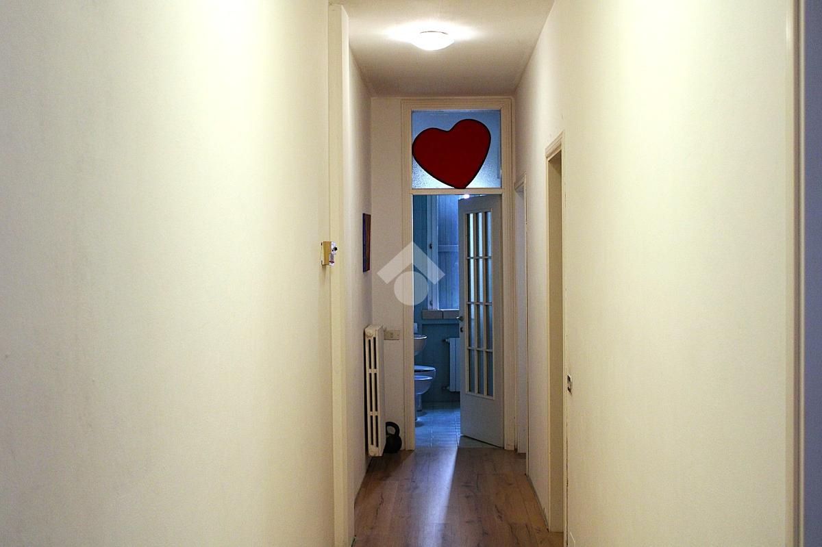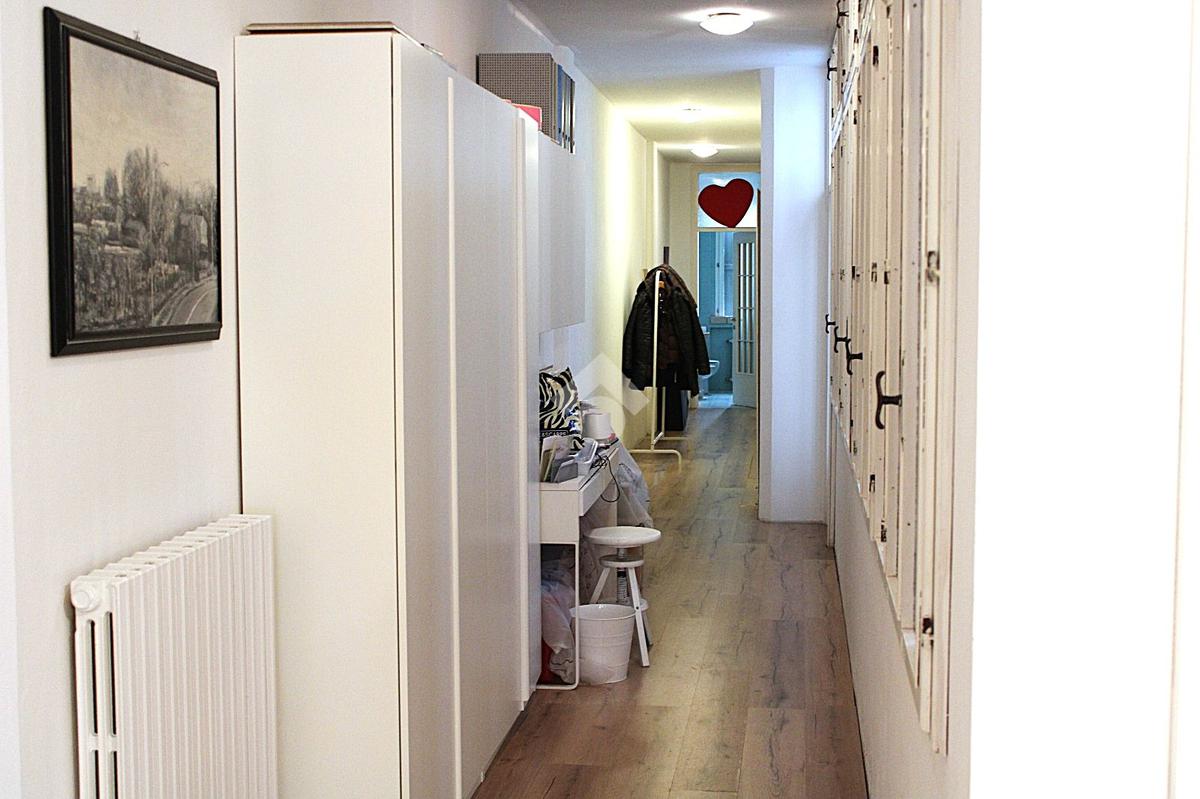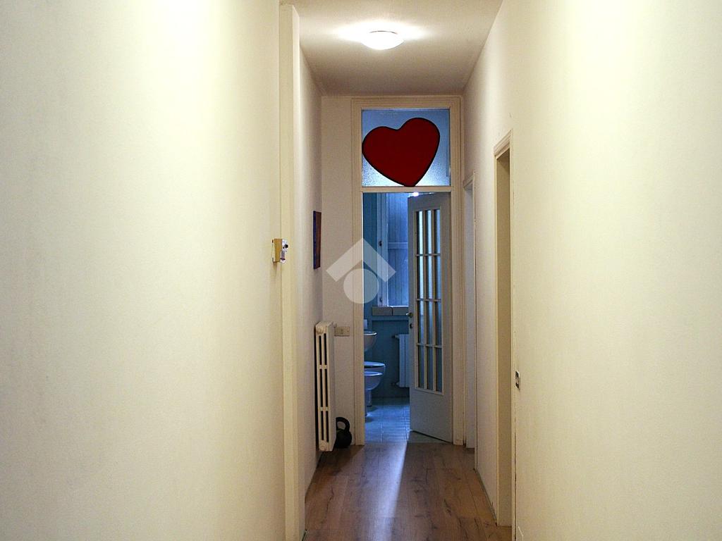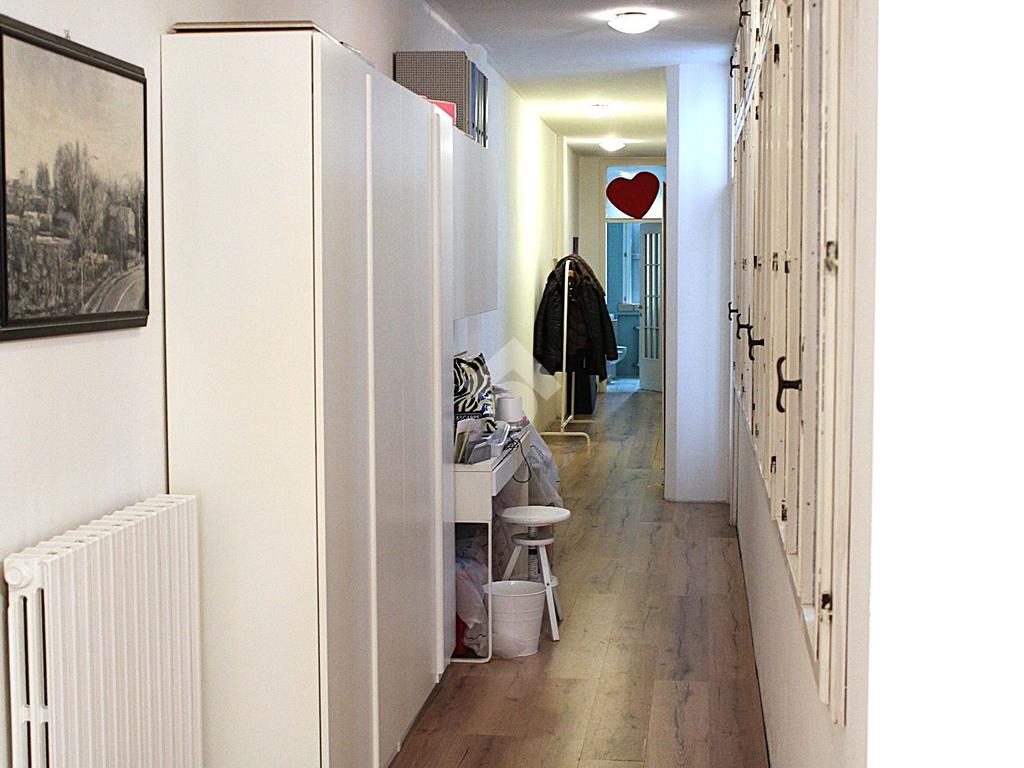 Procedendo lungo il corridoio troviamo diverse finestre che aumentano lo spazio luminoso, in questa zona si trova la prima camera singola e poco più avanti l'accesso al primo bagno, non finestrato e con vasca.