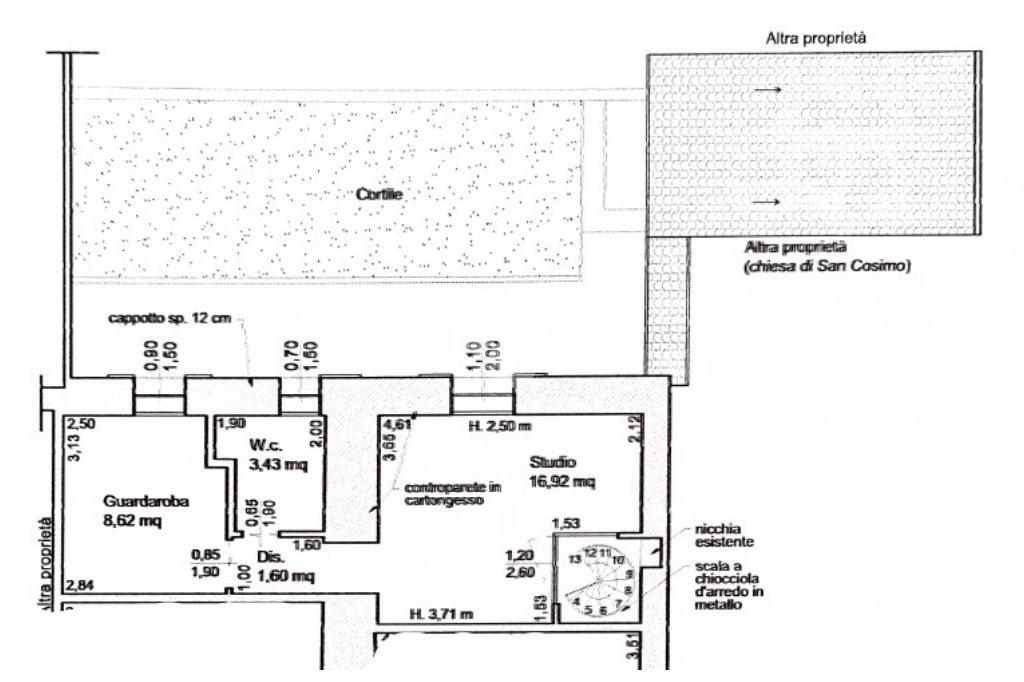 Salendo al piano superiore, vi è la seconda camera da letto matrimoniale che si affaccia sulla propria corte: comunicante ad essa, vi è uno studio, ideale come sala hobby o come spazio per la propria attività.