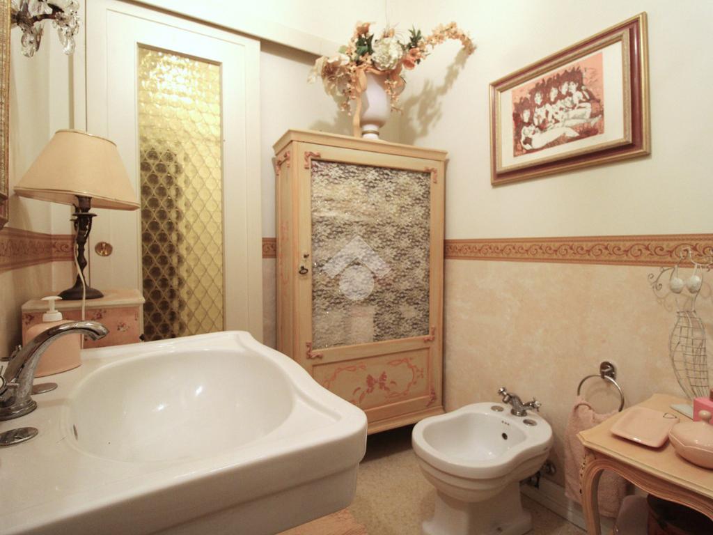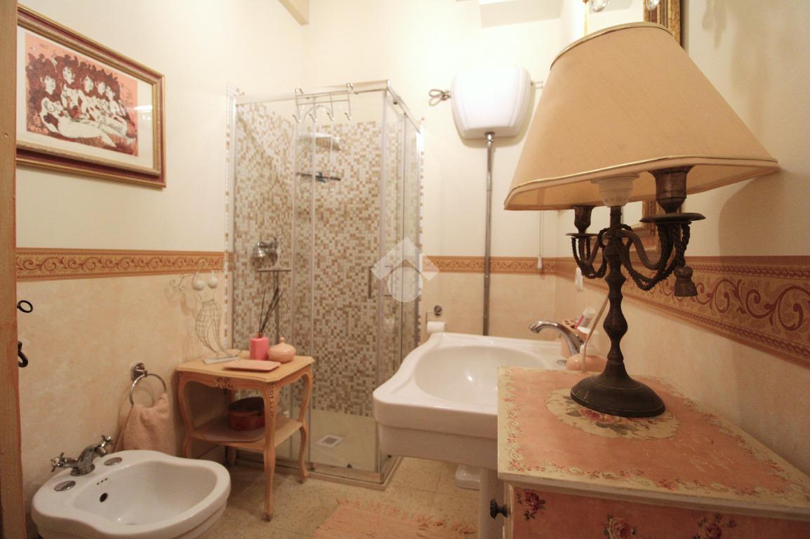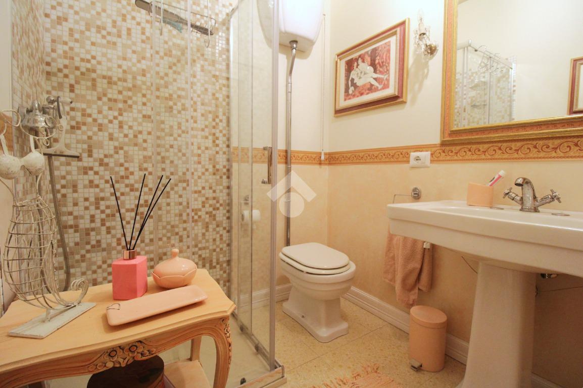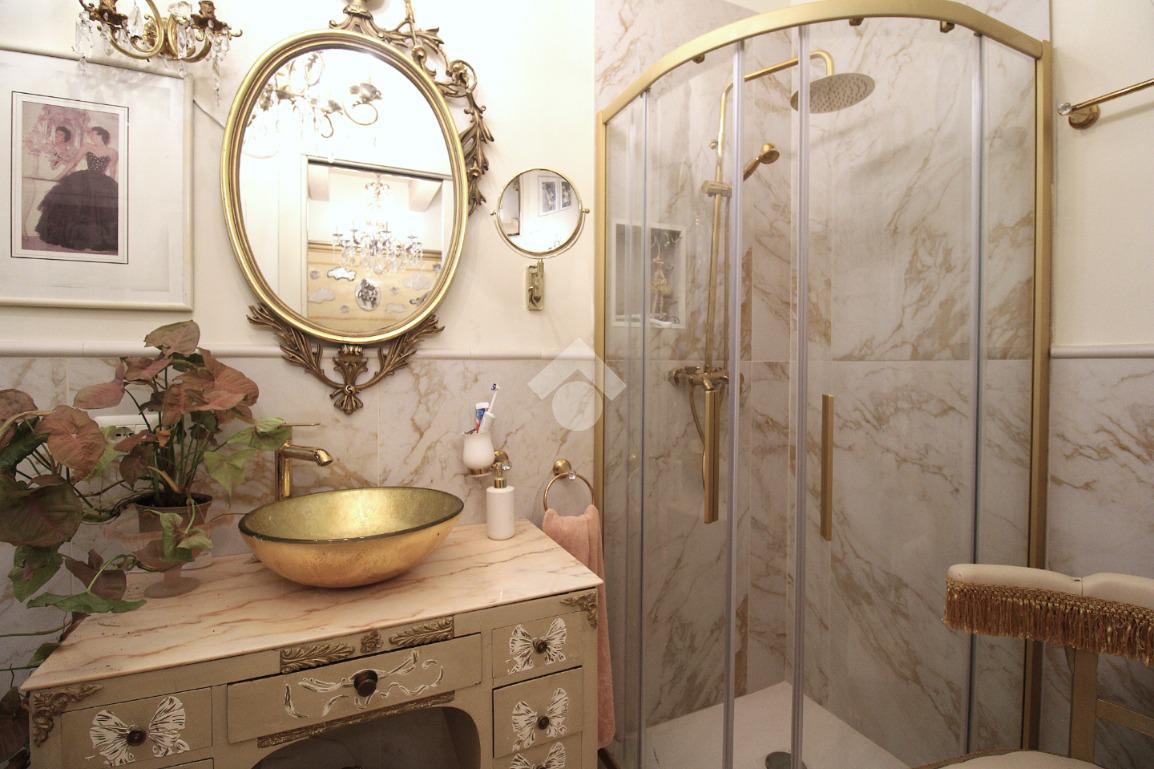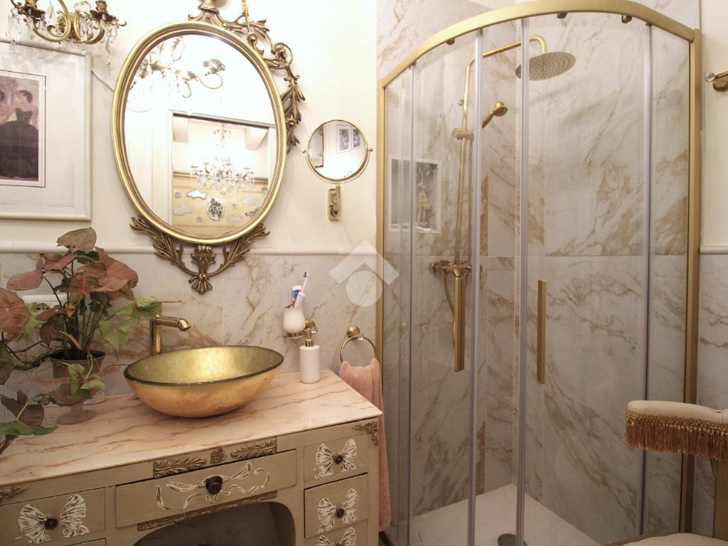 Sul piano c'è il terzo bagno finestrato e dotato di box doccia: è da apprezzare l'attenzione nello scegliere sanitari in stile retrò in ogni servizio, preservando così armonia e carattere nell'abitazione.