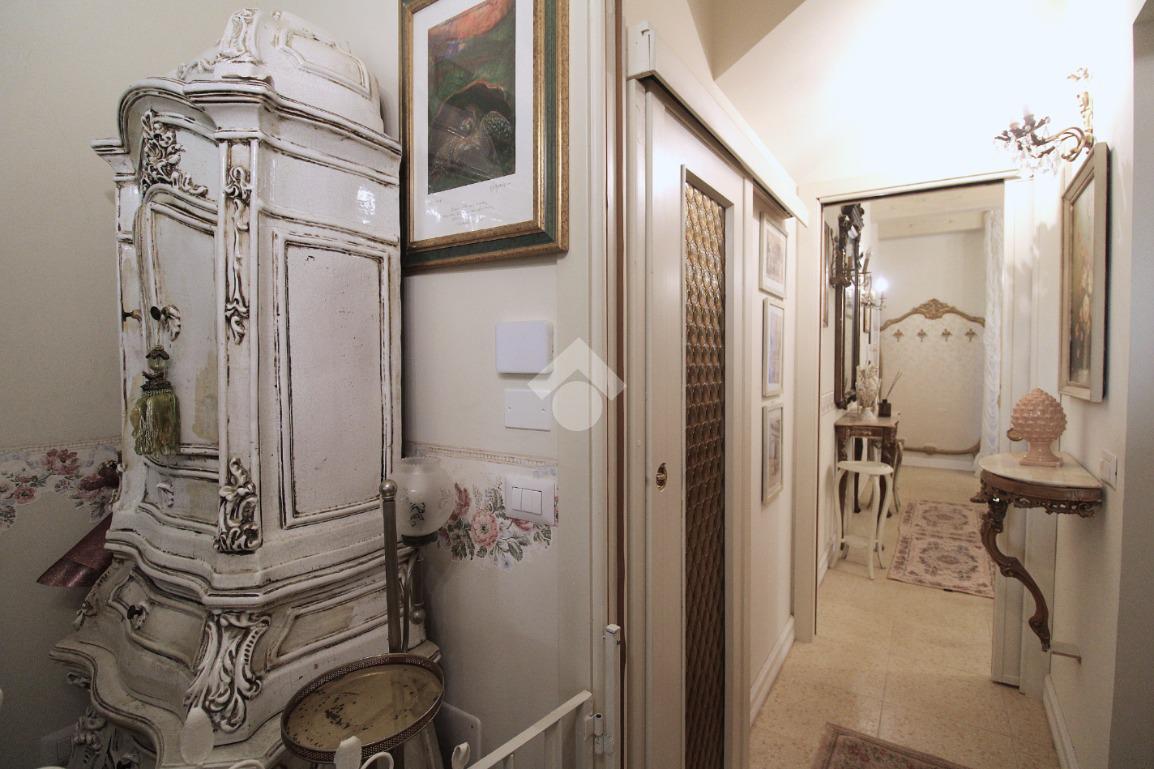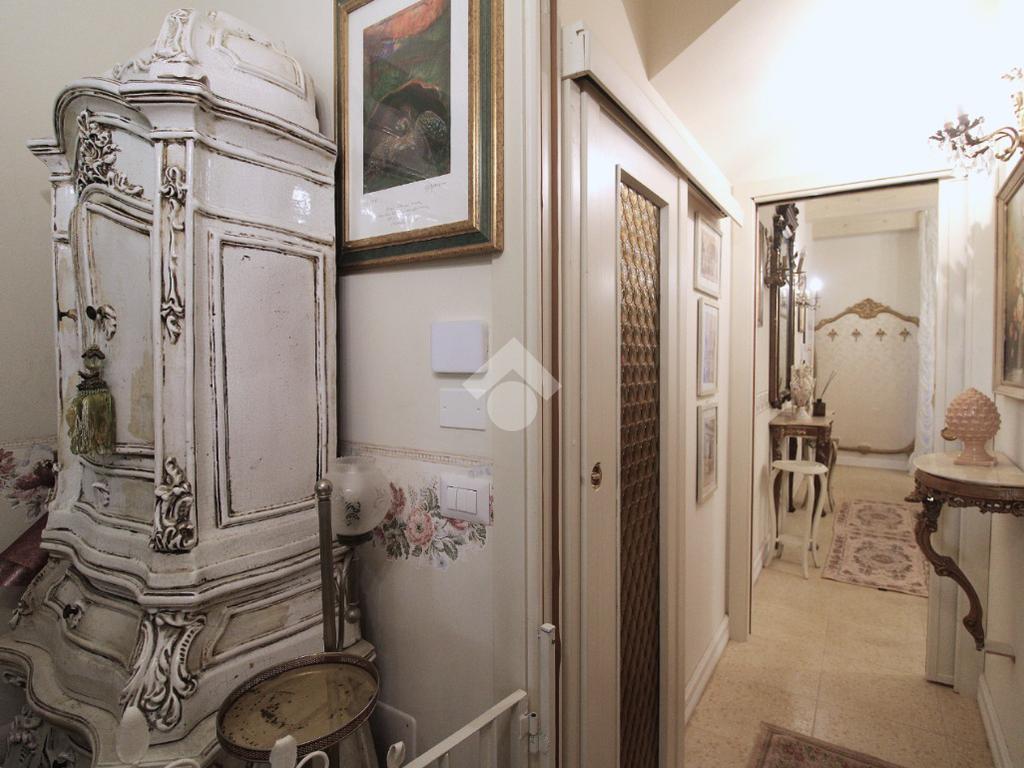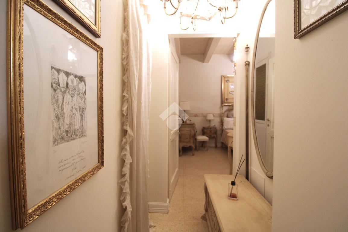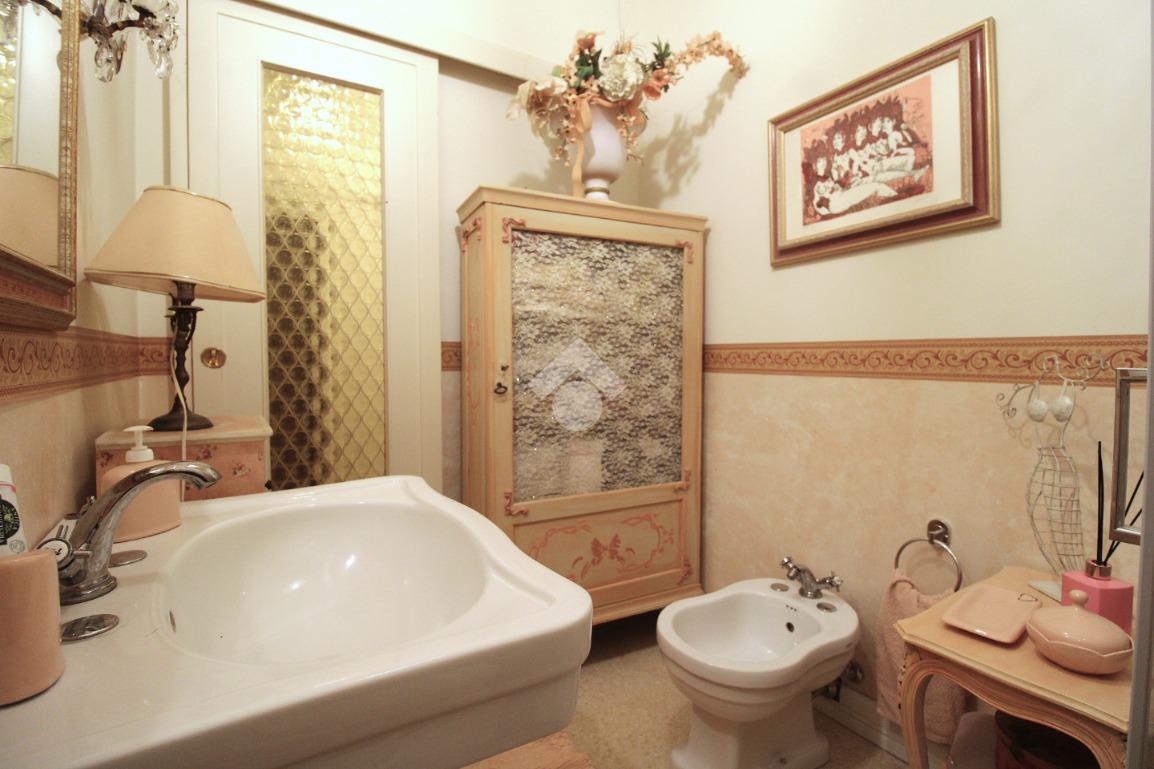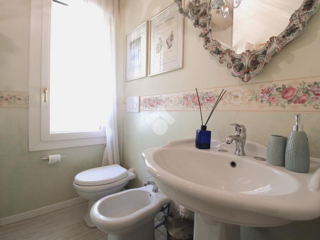 Sul piano c'è il terzo bagno finestrato e dotato di box doccia: è da apprezzare l'attenzione nello scegliere sanitari in stile retrò in ogni servizio, preservando così armonia e carattere nell'abitazione.
