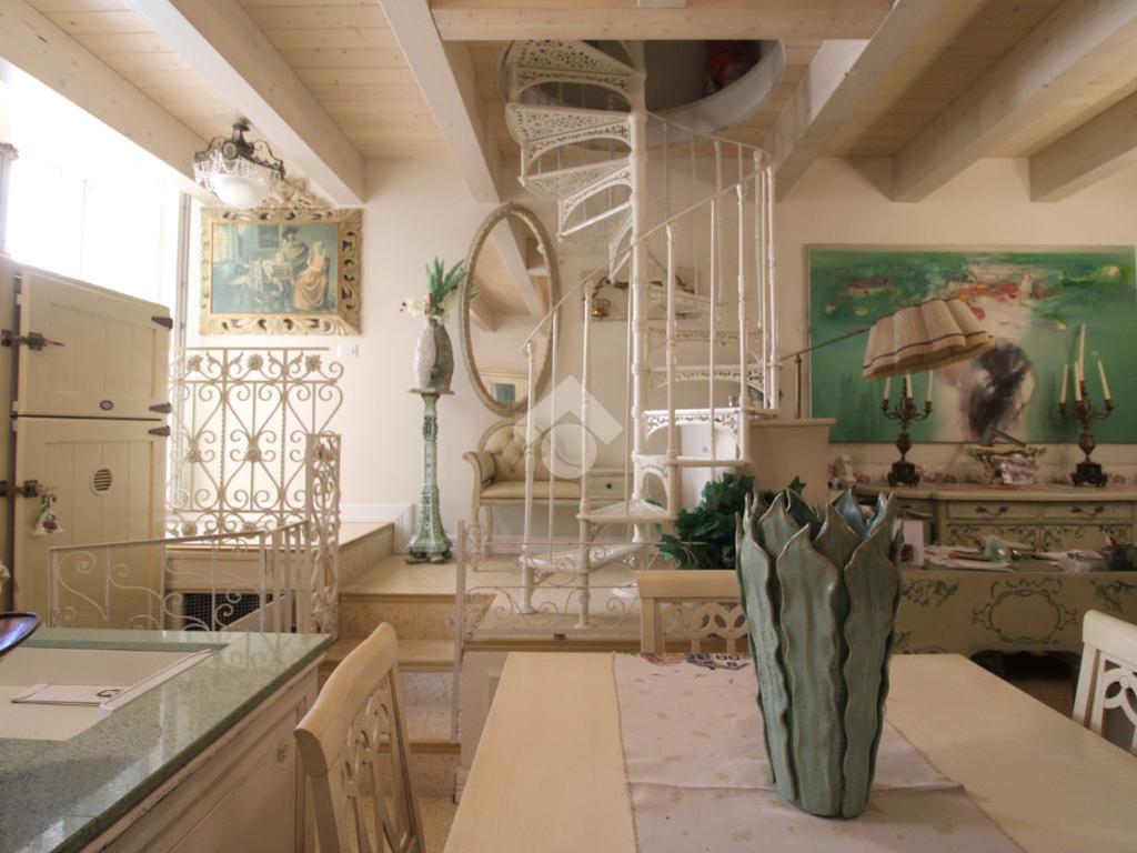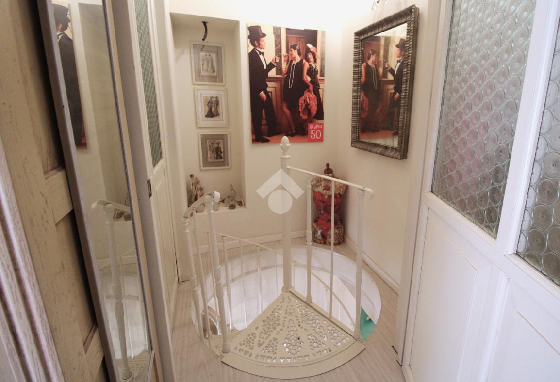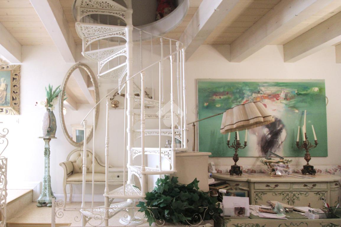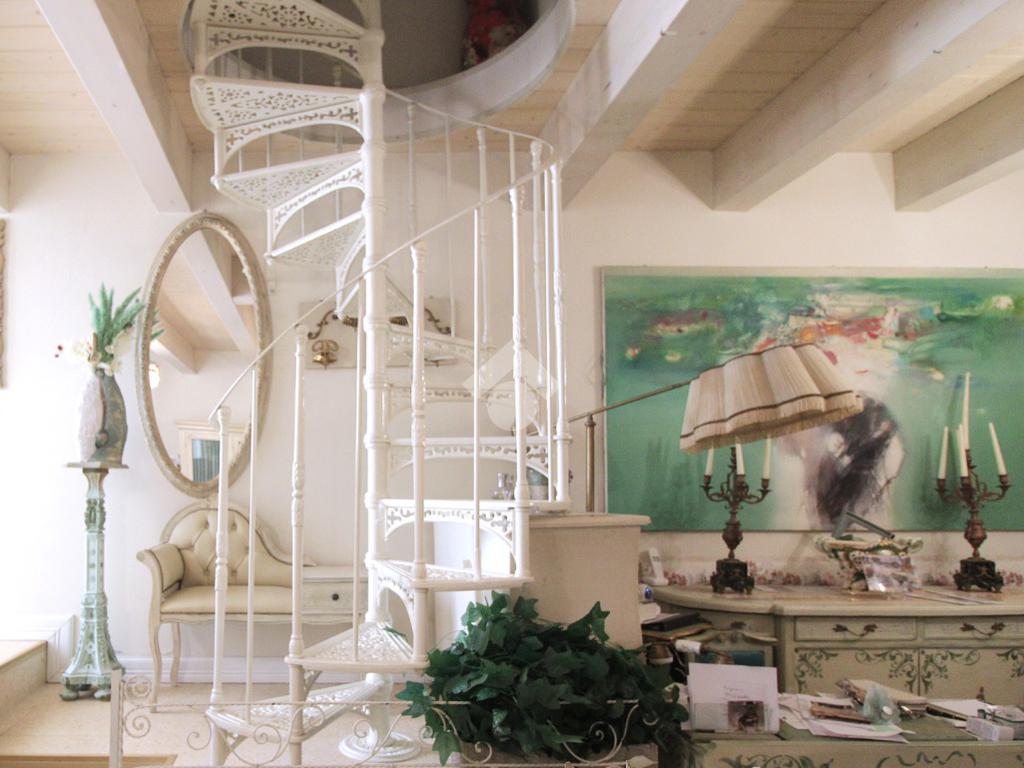 Le finiture pregiate sono molteplici: ad esempio vi sono porte scorrevoli con vetrate Tiffany e una scenografica scala a chiocciola in ferro battuto che conduce al piano primo.