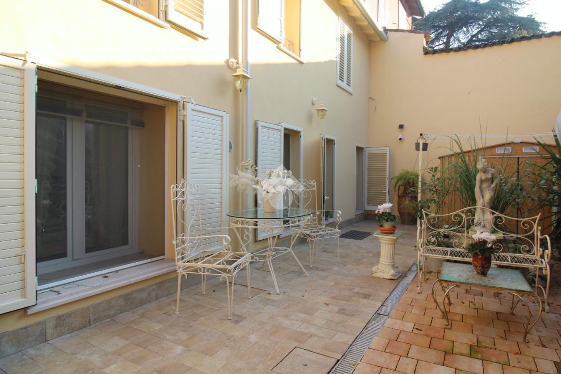 Essa dispone di tre ingressi: uno nella corte comune con passo carraio (grazie al quale è possibile accedere al garage privato), uno dalla zona servizio ed uno dalla corte privata pavimentata, protetta da piante per una maggiore privacy.